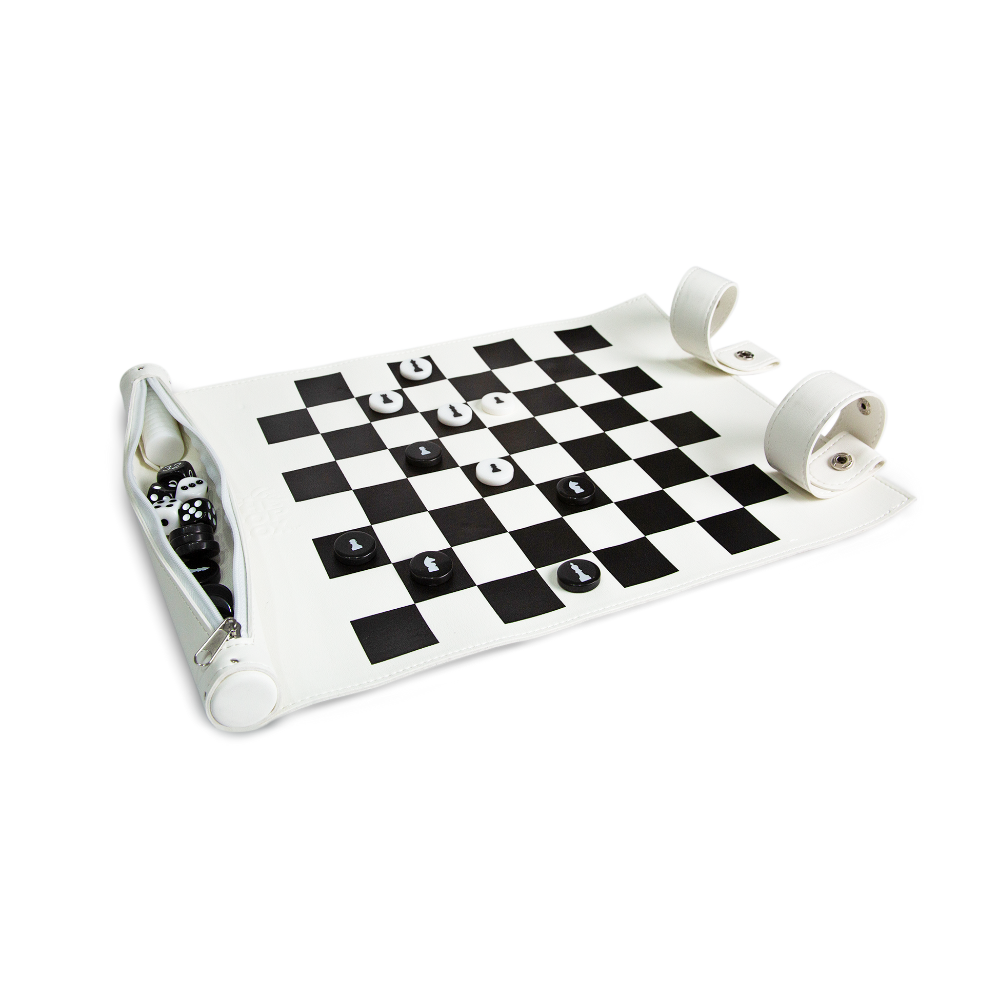 A compact chess, backgammon, and checkers set for moments of quiet strategy